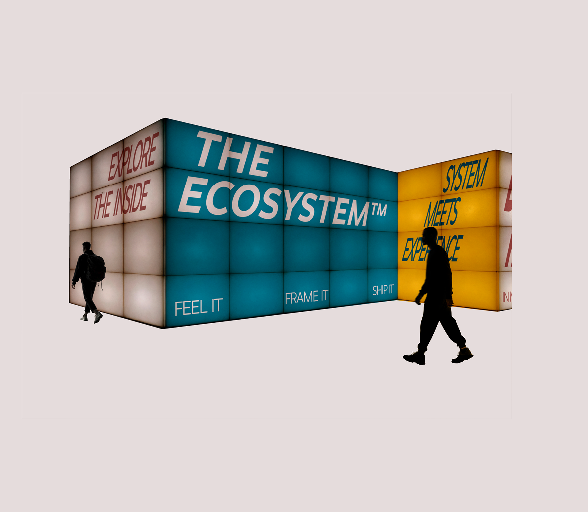 Ecosystem expands the identity into a wider system across spaces, platforms, and touchpoints. This is where the brand leaves the studio and starts living in the world.